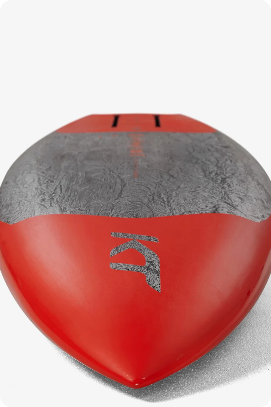Aero-tuned nose and tail curves reduce windage and improve crosswind performance. Refined through testing with Kai Lenny, Kane de Wilde, Otis Buckingham, and the KT team.